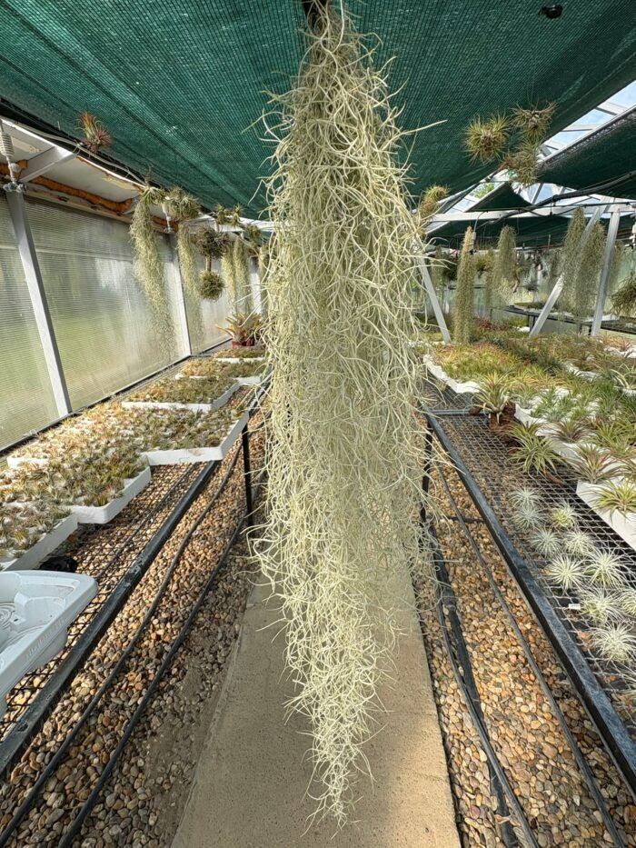 U pustinjskim regionima jugozapadnih Sjedinjenih Država, ponekad se sušena španska mahovina koristi u proizvodnji rashladnih uređaja za isparavanje, kolokvijalno poznatih kao „hladnjaci za močvare“ (a u nekim oblastima i kao „hladnjaci u pustinji“), koji se koriste za mnogo hlađenja domova i kancelarija jeftinije od klima uređaja. Tehnologija hlađenja koristi pumpu koja prska vodu na podlogu napravljenu od biljaka španske mahovine; ventilator zatim uvlači vazduh kroz podlogu i ulazi u zgradu. Isparavanje vode na jastučićima služi za smanjenje temperature vazduha, hlađenje zgrade. Španska mahovina je zapravo autohtona biljka na Floridi. Takođe je porijeklom iz ostatka jugoistočnih država, kao i Centralne i Južne Amerike. Ime Indijanaca za ovu biljku u prevodu znači „brada drveta“. Biljka je podsetila francuske naseljenike na bradu španskih konkvistadora, pa su je nazvali „španska brada”. Naziv “španska mahovina” je izveden iz ovoga.Španska mahovina je epifitska biljka, poznata i kao vazdušna biljka. Ova biljka dobija svu vodu i hranljive materije koje su joj potrebne iz vazduha, kiše i životinjskih fekalnih materija (koji su bogati azotom). Ne postoje koreni koji prodiru u koru drveta da bi ukrali resurse. Španska mahovina ima male listove poput ljuspica koji joj omogućavaju da se drži za koru, a da je ne ošteti. Nasuprot tome, imela je uobičajeni parazit drveća u ovoj oblasti. Koreni imele prodiru u koru drveta i uzimaju resurse iz vaskularnog tkiva domaćina.