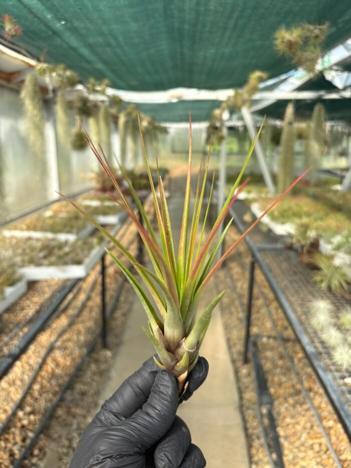 Poreklom iz Centralne Amerike i Meksika, šiljasta trobojnica Tillandsia. Dobija oznaku “trobojna” jer menja boju na osnovu količine sunčeve svetlosti koju prima. Ako dobije dovoljno jarke sunčeve svetlosti, pocrveneće uz nijanse tamnocrvene i ljubičaste.